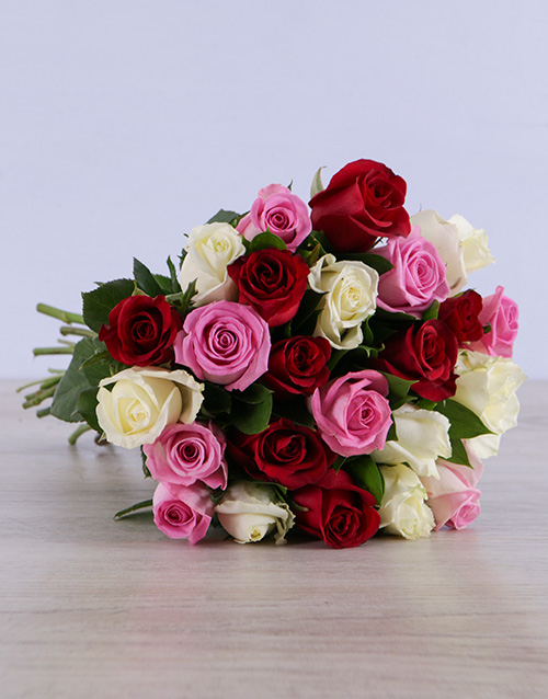 Mixed Roses in White Craft Paper (24 Roses)
